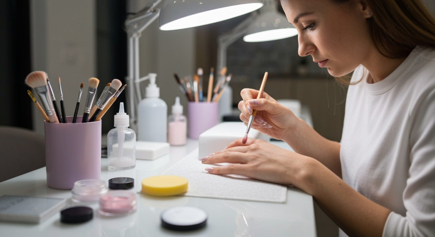 Kłopoty z przyczepnością pyłku na paznokciach często wynikają z niewłaściwego przygotowania warstwy dyspersyjnej. Gdy jest ona zbyt mało lepka, pyłek nie trzyma się i odpada. Aby temu zapobiec, upewnij się, że warstwa dyspersyjna lakieru hybrydowego ma odpowiednią lepkość przed aplikacją pyłku[5]. Skorzystaj z takich narzędzi jak pędzelek czy pacynka, co pozwoli uzyskać jednolite pokrycie i trwały efekt.